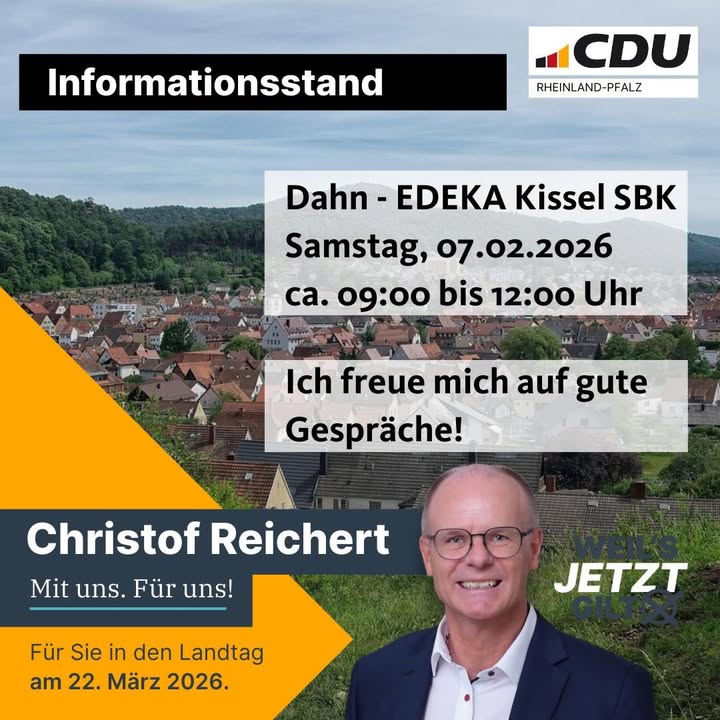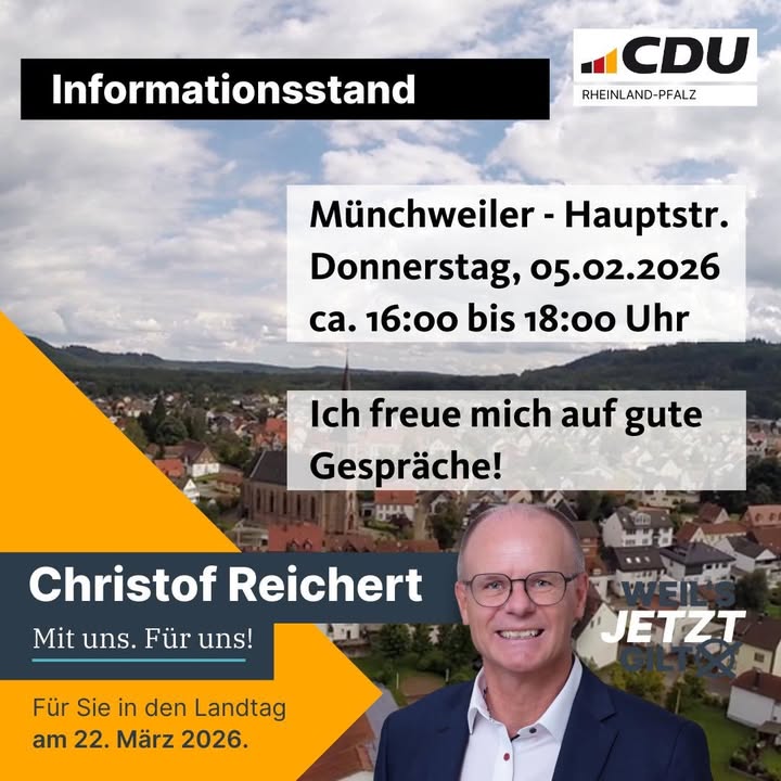 mehrAm Samstag bin ich mit meinem Infostand zur Landtagswahl vor Ort in Dahn.Kommen Sie vorbei, informieren Sie sich aus erster Hand. Ich freue mich 🤩!