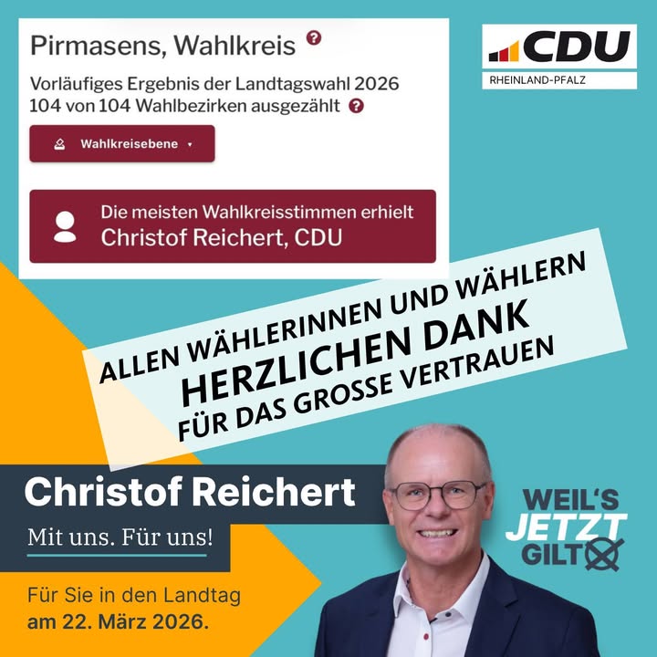mehrDas war er: der letzte Wahlkampfmorgen vor der Wahl!! ☀️🗳️Danke für all eure Unterstützung 🙌Heute nochmal in Pirmasens und Rodalben präsent ? viele gute Gespräche und starke Ideen! 💬✨Jetzt gilt?s! 💪Morgen beide Stimmen CDU wählen gehen! 🗳️❌