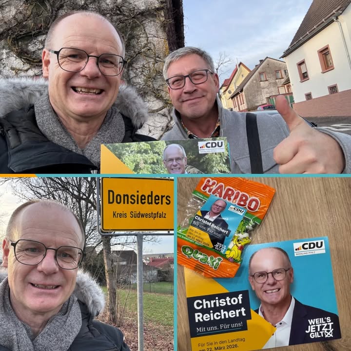 mehrNach Clausen ging?s zum Nachbarort Donsieders.Von Tür zu Tür war ich gemeinsam mit Georg Schäfer unterwegs. Danke für die Unterstützung. Danke auch für den freundlichen Empfang an den Haustüren und die Möglichkeit, persönlich für meine Ziele zu werben. #donsieders #südwestpfalz #cdurlp #landtagswahl2026 #zuhörenaufaugenhöhe