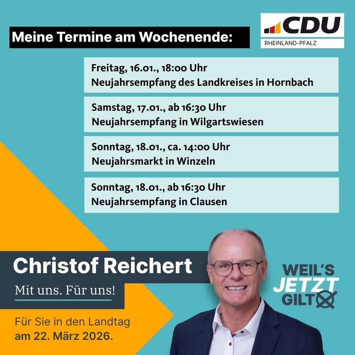 mehrNeben meiner Tour von Haustür zu Haustür bin ich am Wochenende auch wieder auf einigen Veranstaltungen unterwegs...Vielleicht treffen wir uns ja?#Hornbach #Wilgartswiesen #Winzeln #Clausen #südwestpfalz #cdurlp #landtagswahl2026 #zuhörenaufaugenhöhe