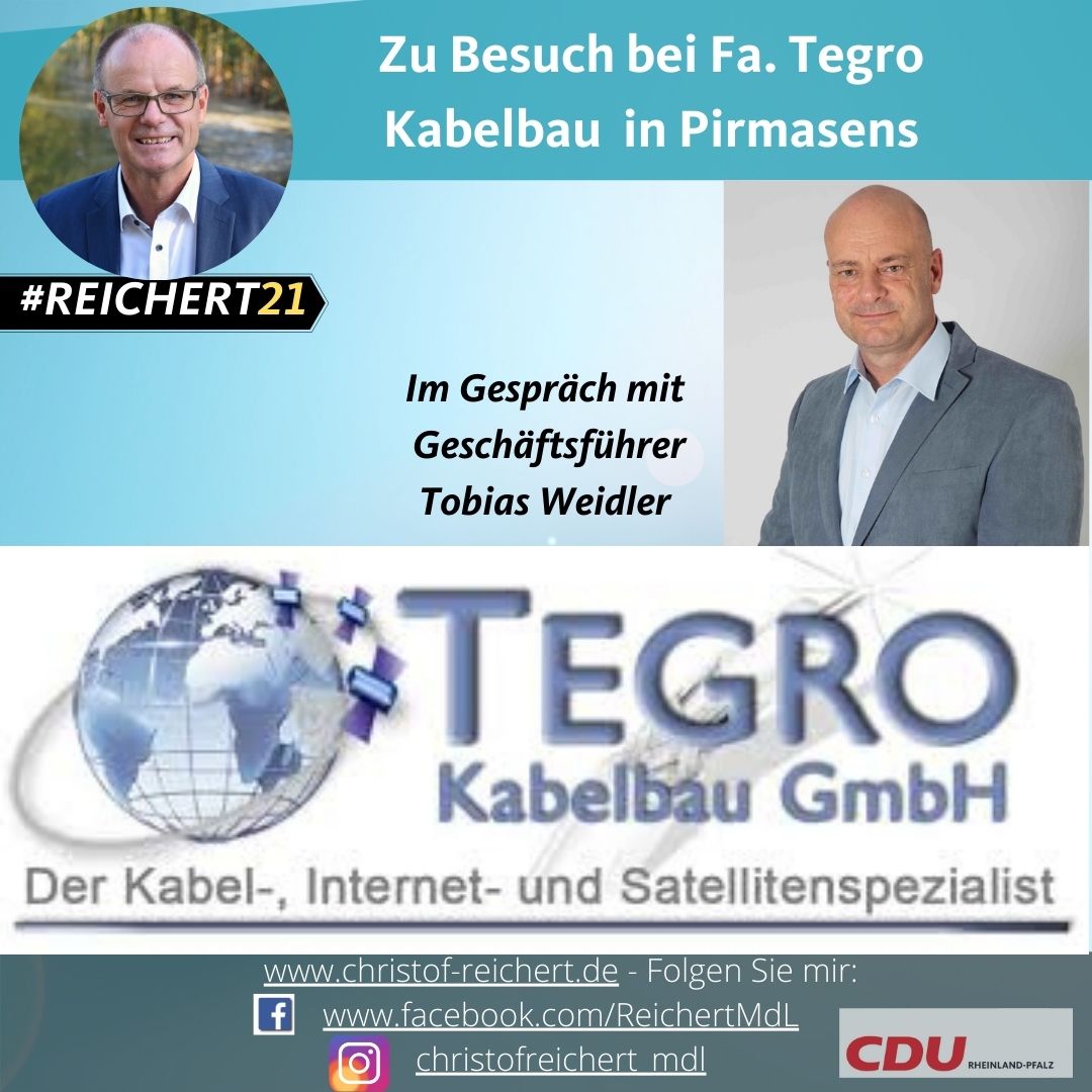 Tegro Kabelbau GmbH: Es war ein sehr informatives Gespräch mit Geschäftsführer Tobias Weidler. Beeindruckend welches Portfolio die Fa. Tegro im Telekommunikationsgeschäft anbietet. Ein Unternehmen vor Ort für unsere Region. Die Fa. investiert in den Glasfaserausbau und bietet individuellen Service im Multimediabereich. Ich wünsche der Firma weiterhin viel Erfolg.