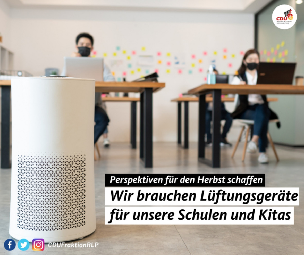 Für uns als CDU-Fraktion steht fest: Die organisierte Installation von Luftreinigungsgeräten und Abluftfiltern in Schulen und Kitas ist ein entscheidender Beitrag zur Sicherheit aller Betroffenen. Wir wollen unbedingt, dass Schul- und Kita-Schließungen im Herbst und Winter verhindert werden können. Rheinland-Pfalz braucht ein Beschaffungsprogramm in Anlehnung an das baden-württembergische Modell. Dort werden rund 60 Millionen Euro landesweit für Luftfilter zur Verfügung gestellt – auf die Größe von Rheinland-Pfalz gerechnet schlagen wir ein Investitionsprogramm über 20 Millionen Euro vor – ein erster Schritt.
