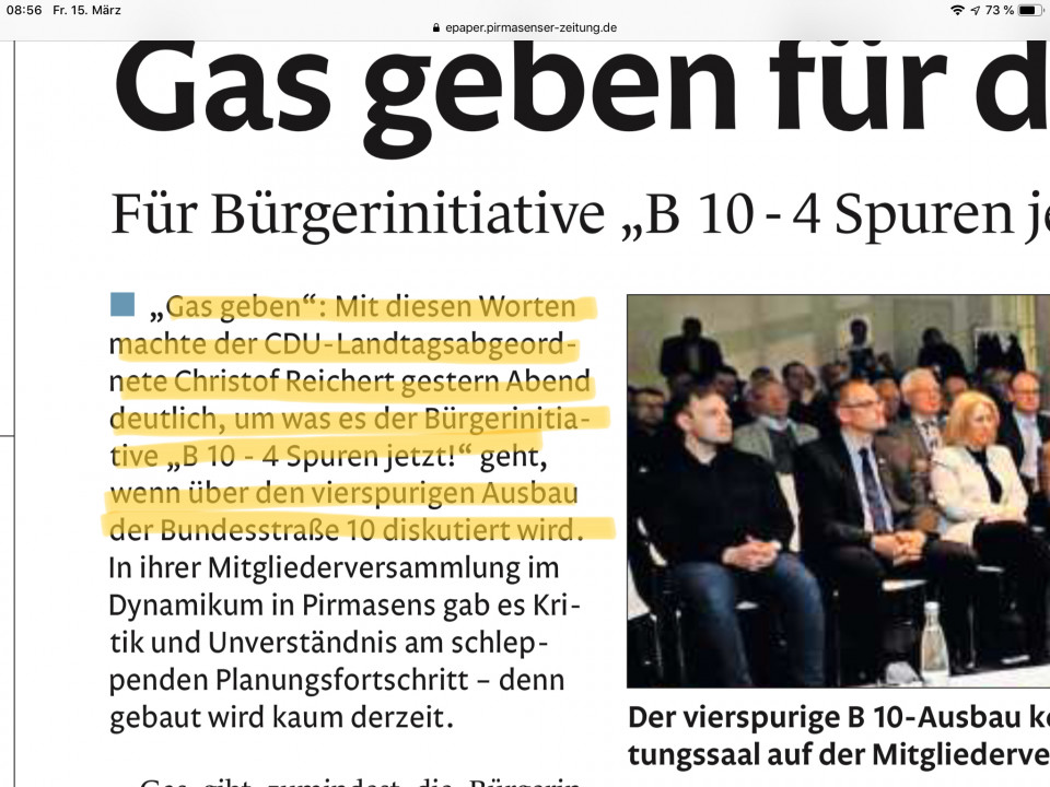 Die Region fordert einen schnellstmöglichsten Ausbau der B 10!